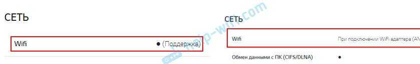 Если “–” – значит нет. Может быть еще написано: “При подключении WiFi адаптера (AN-WF500)”, “Опционально”, “(Поддержка)”. Это значит, что нужно покупать и подключать внешний USB Wi-Fi модуль (приемник). Только после этого в телевизоре заработает беспроводное соединение.
