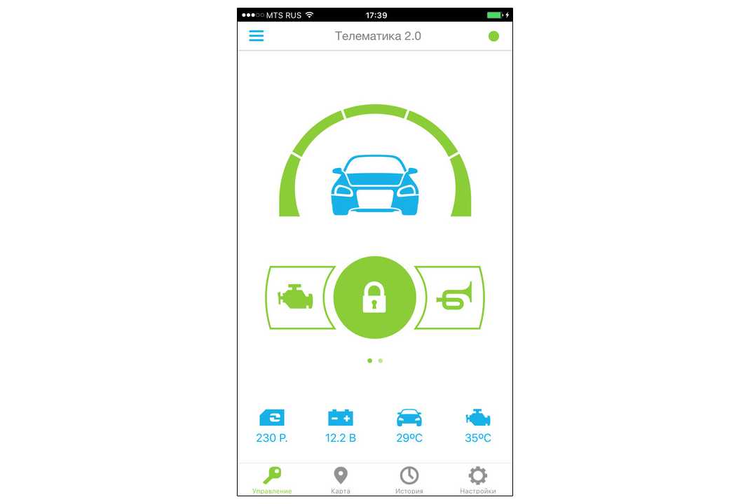 Теперь мы получим полный контроль с телефона над всеми скрытыми настройками сигнализации. С главной страницы открывается быстрый доступ к управлению центральным замком, запуском двигателя и открытию багажника.