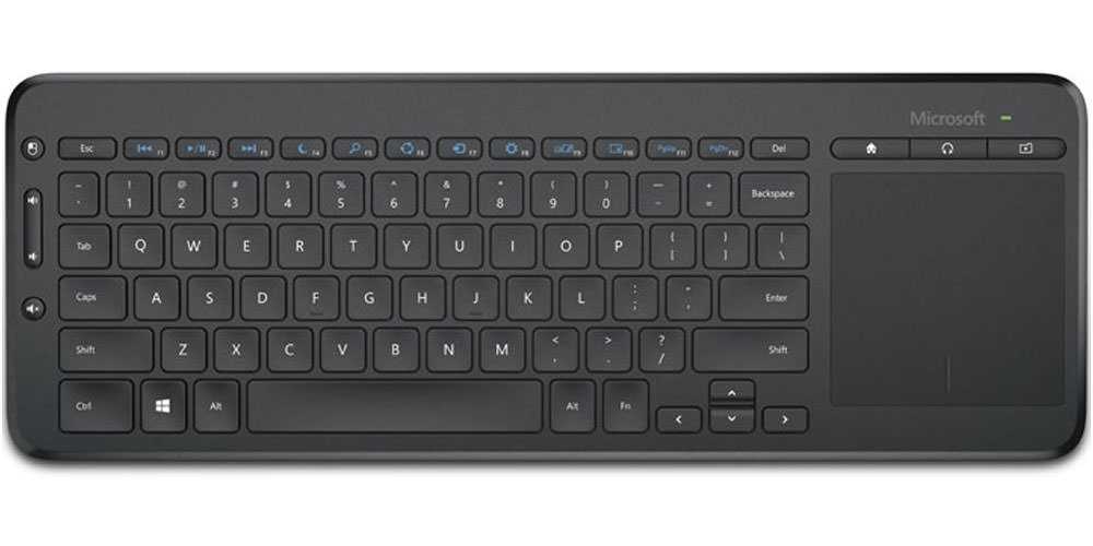Клавиатура All-in-One Media Keyboard — идеальное устройство для дома, офиса. Она имеет полноразмерный набор клавиш, интегрированную мультисенсорную панель (последняя поддерживает разные действия: печать, перетаскивание, увеличение, нажатие). Настраиваемые горячие мультимедийные клавиши обеспечивают быстрый доступ к интернету и любимой музыке, фотографиям, фильмам. Устройство очень прочное, поэтому можно не опасаться ударов, падений или пролитого кофе. Радиус действия — 10 м, это меньше, чем в Rii RT-MWK08 Black USB. Эта клавиатура использует технологию шифрования Advanced Encryption Standard (AES), которая разработана, чтобы защитить вашу информацию путём шифрования данных о нажимаемых клавишах. Каждая клавиатура надёжно соединена со своим приемопередатчиком, важная информация никогда не передаётся беспроводным способом. Устройство совместимо только с Windows.