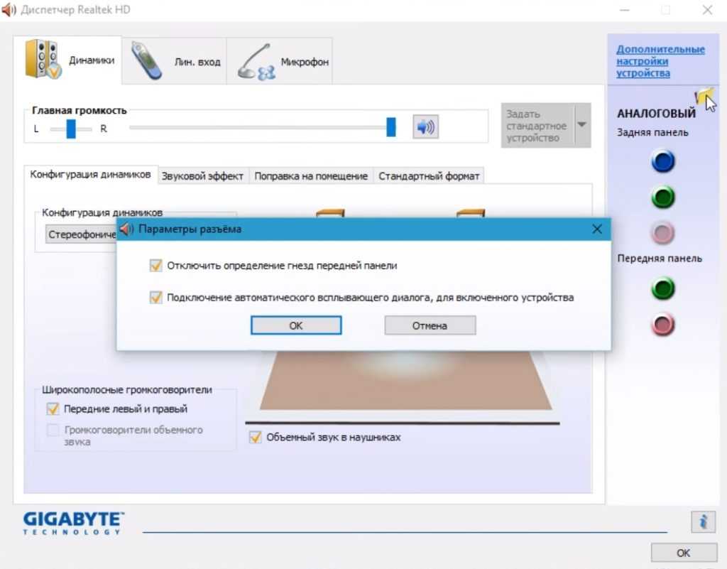 Если на ПК установлена карта Realtek, можно настроить работу колонок и наушников в единовременном режиме. Этапы действий пользователя: