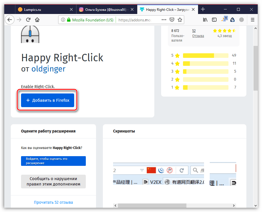 Способ 2: Happy Right-Click для Mozilla Firefox