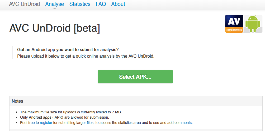 - AVC UnDroid — undroid.av-comparatives.org (лимит на одну загрузку — 7 мегабайт);