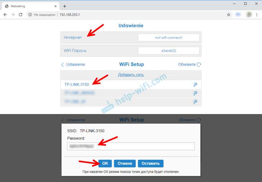 Нажимаем на «Интернет». Появится список доступных Wi-Fi сетей. Выбираем свою Wi-Fi сеть и вводим пароль к ней.