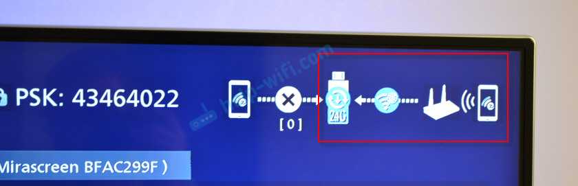 Нужно немного подождать. Если мы правильно ввели пароль от Wi-Fi сети и нет никаких проблем на стороне роутера, то адаптер будет подключен к Wi-Fi. Это можно увидеть по иконке на экране телевизора.