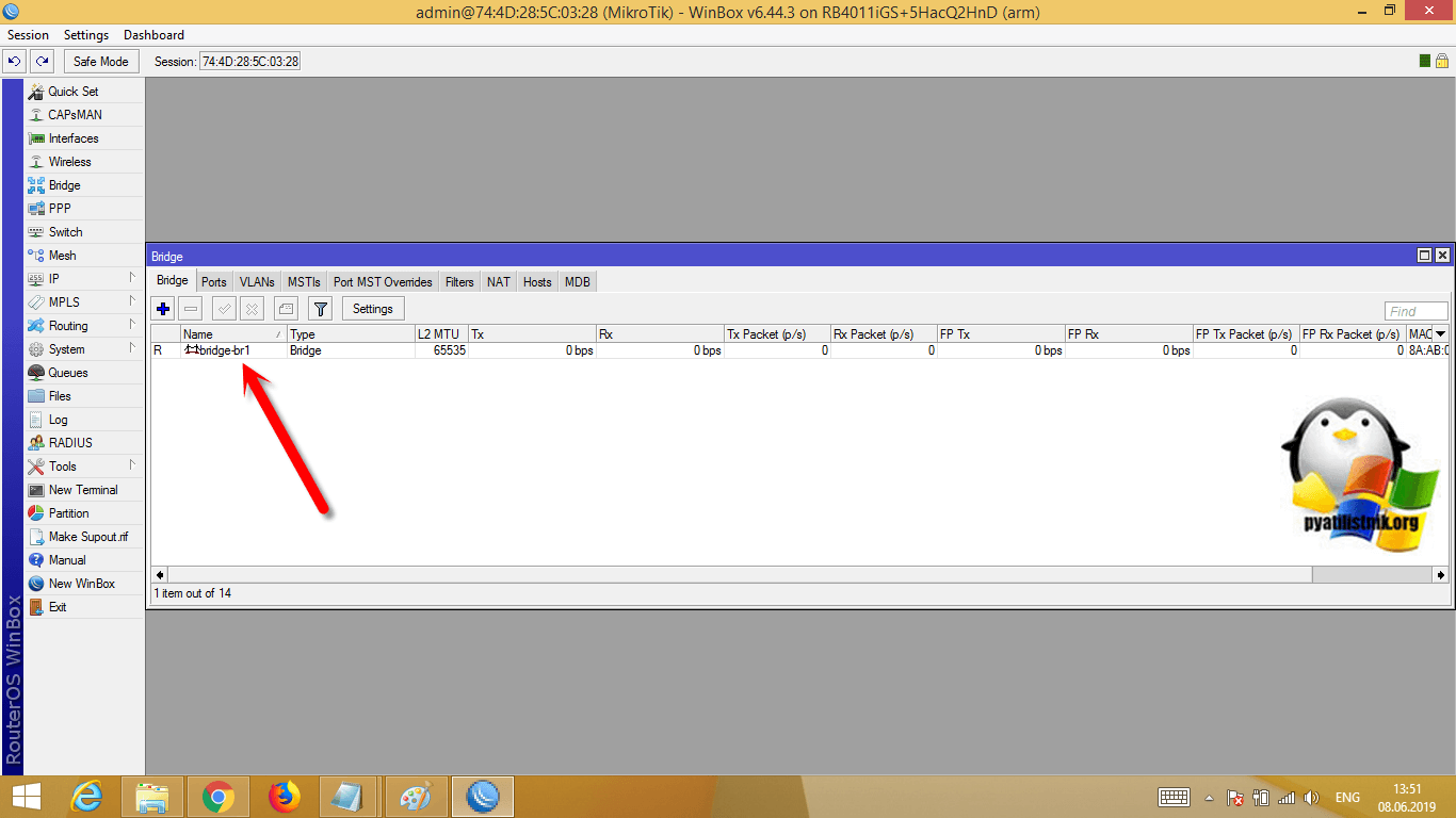 Видим, что в списке появился наш новый мост, теперь в него нужно добавить нужные нам интерфейсы.