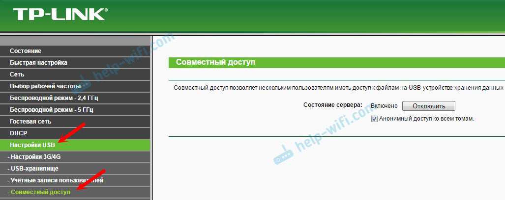 Как видите, все работает без каких либо настроек роутера. Нам даже не понадобилось входить в панель управления. Но я все таки решил показать настройки общего доступа. Там можно отключить анонимный доступ. Это когда для доступа к накопителю нужно будет вводить имя пользователя и пароль учетной записи. Можно создавать учетные записи с разными правами доступа. Например, только с правами на чтение (просмотр файлов).