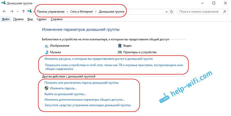 Если открыть Центр управления сетями и общим доступом — Домашняя группа, то можно будет настроить общий доступ, покинуть группу, посмотреть пароль и т. д.