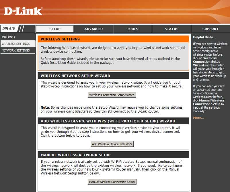 1. Перейдите в раздел Setup, выберите пункт Wireless Settings, нажмите кнопку Manual Wireless Connection Setup.