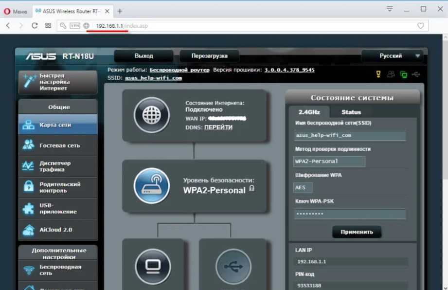 Внешний вид панели управления роутеров Asus
