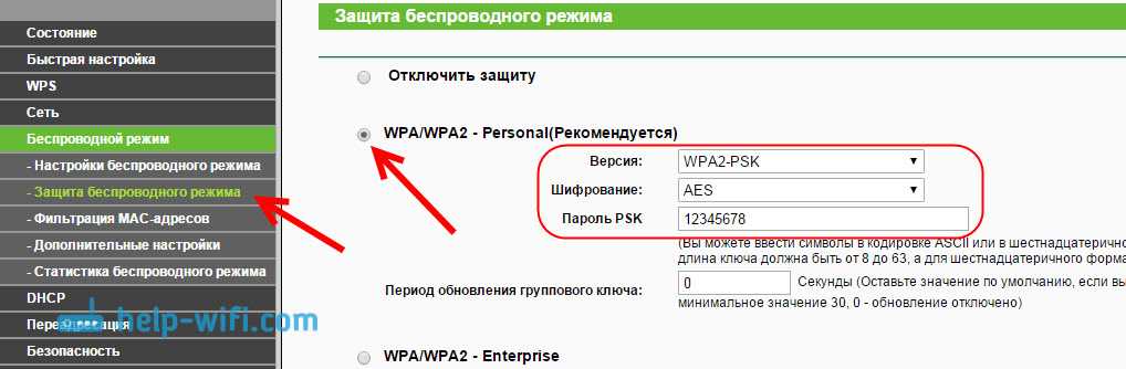 Установите WPA/WPA2