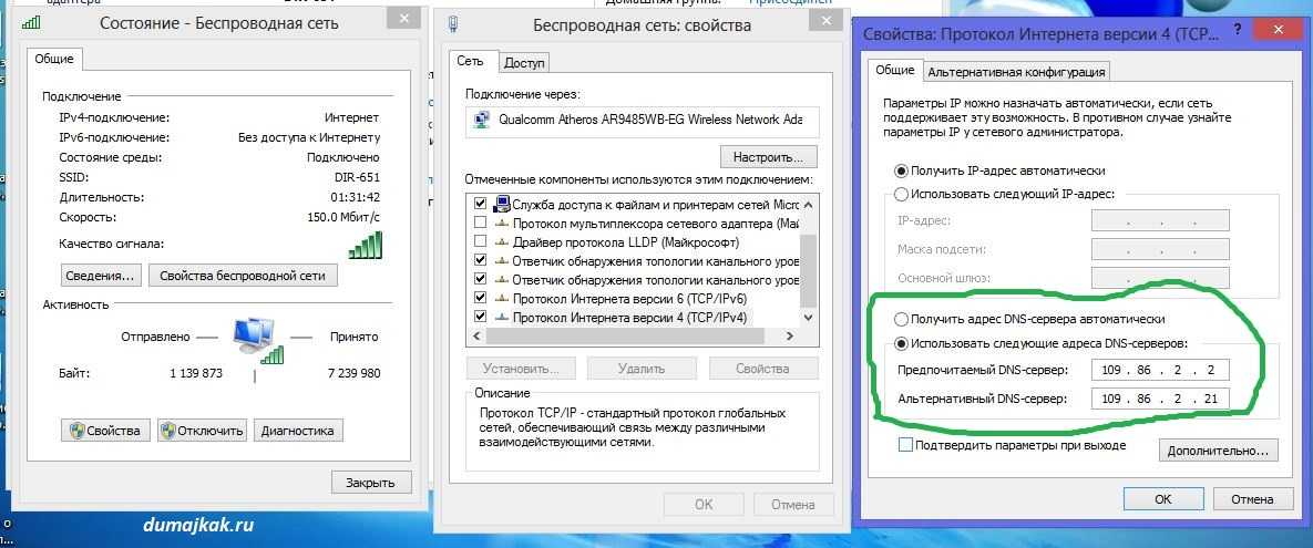 Но так как я на роутере подправляла только DNS, то я решила вписать туда свой адрес DNS-сервера и альтернативный DNS, которые можно посмотреть в настройках сети на стационарном компьютере, ну или спросить у провайдера. Получила вот такую картину: