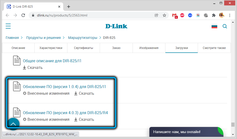 Скачать её можно с официального сайта компании, кликнув по кнопке «Загрузки», выбрав нужную версию и нажав кнопку «Скачать». Здесь же можно ознакомиться с изменениями в конкретной версии микропрограммы.