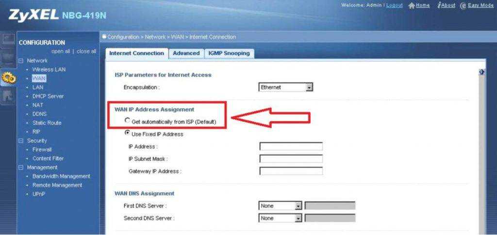 Если дома вы используете роутер, то зайдите на страницу его администрирования (обычно это 192.168.0.1 или 192.168.1.1 с логином admin и паролем admin) и найдите раздел WAN Connection.