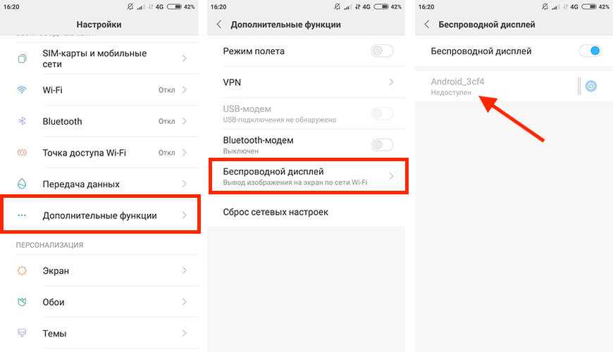 Находится она в разделе «Настройки — Дополнительные функции — Беспроводной дисплей»