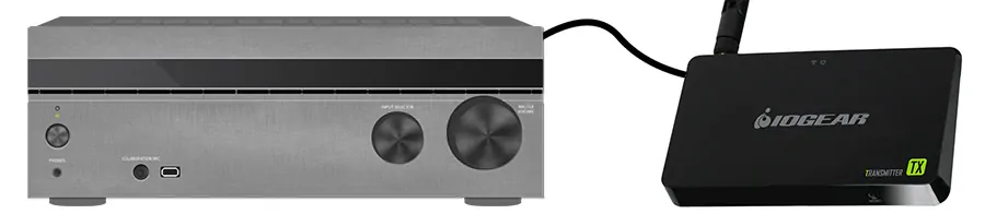 Этот шаг неприменим, если вы используете потоковую передачу, поскольку «другая половина» передачи идет из вашей сети WiFi, а не через передатчик. Но для настоящего комплекта беспроводной передачи замкнуть петлю будет означать установку передатчика на источнике контента. Это не сильно отличается от подключения ресивера к проектору.