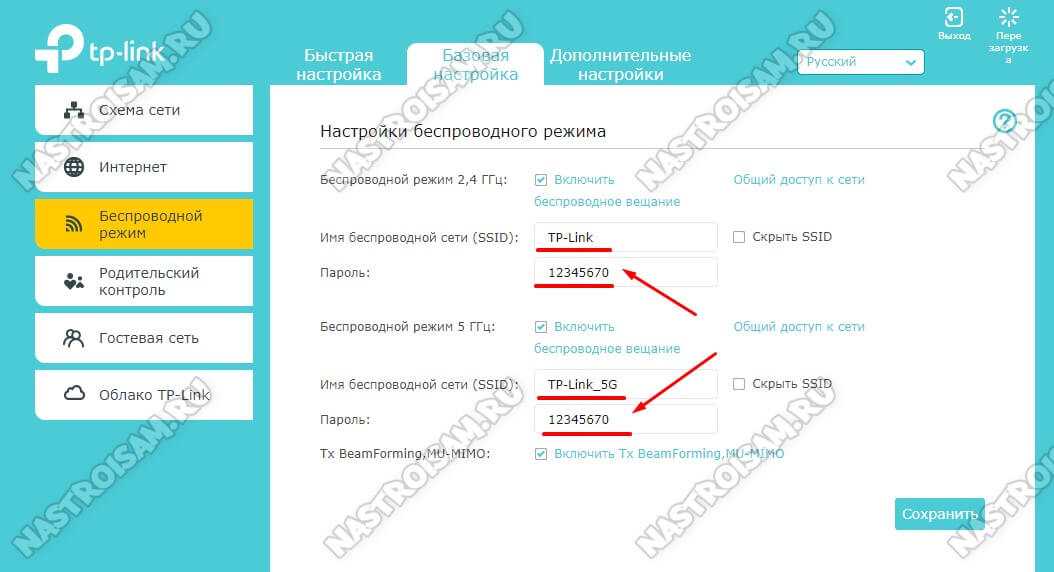 Если устройства двухдиапазонные, то дублируем настройки для обоих диапазонов.: и для 2,4 ГГц, и для 5 ГГц.