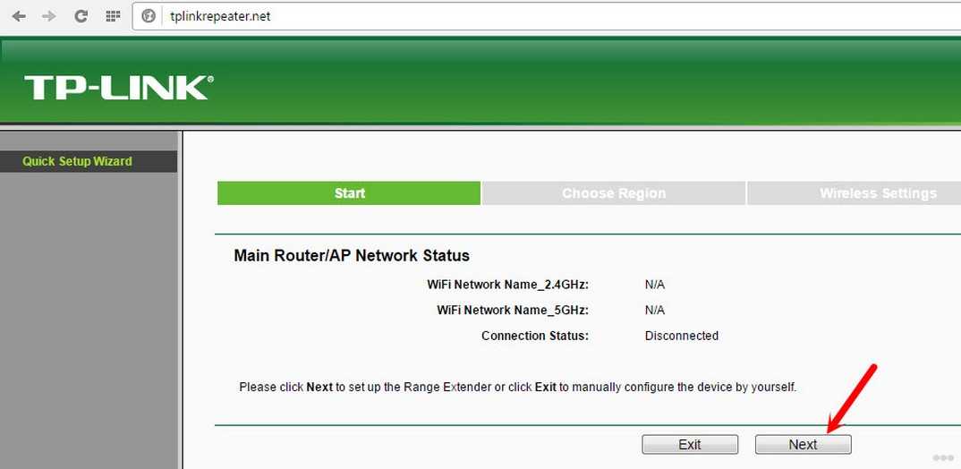 Итак, теперь о том, как настроить ретранслятор от TP-Link. Просто нажимаем Next и выполняем все требования, что будут появляться в разных окошках.