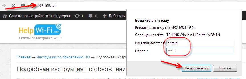 Теперь можно преступить непосредственно к самой перепрошивке роутера. В первую очередь нужно войти в веб-интерфейс маршрутизатора. Для этого открываем любой браузер и в адресной строке вводим 192.168.1.1 или 192.168.0.1. Адрес может быть и другим, уточнить эту информацию можно в документации устройства. После этого появится страница с формой, в которой нужно ввести логин и пароль. По умолчанию большинство маршрутизаторов имеют логин «admin» и пароль «admin». Если при первичной настройке роутера вы изменили эти данные, то вводим соответственно измененные логин и пароль.