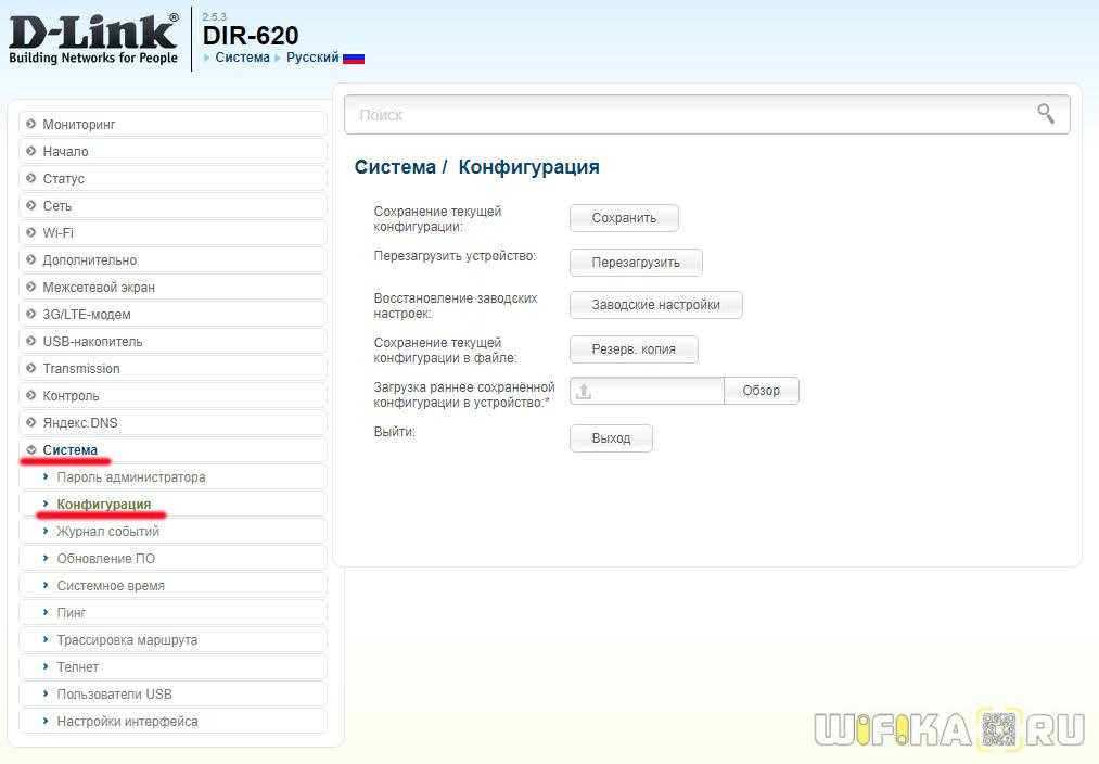 Резервная копия настроек D-Link
