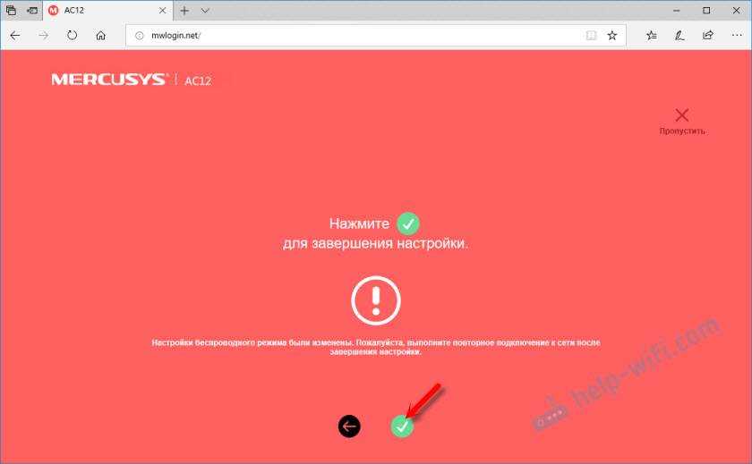 Вот и все. Если Mercusys AC12 раздает интернет и все работает, то настройка завершена.