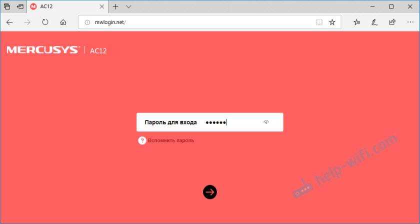Открываем панель управления по адресу mwlogin.net и вводим пароль, который установили в процессе быстрой настройки.