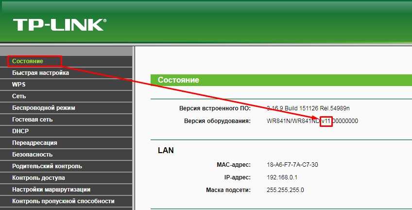 Ещё раз уточните аппаратную версию на вкладке «Состояние» (Status) в строке «Версия оборудования» (Hardware Version) – смотрим на цифры после буквы «V».