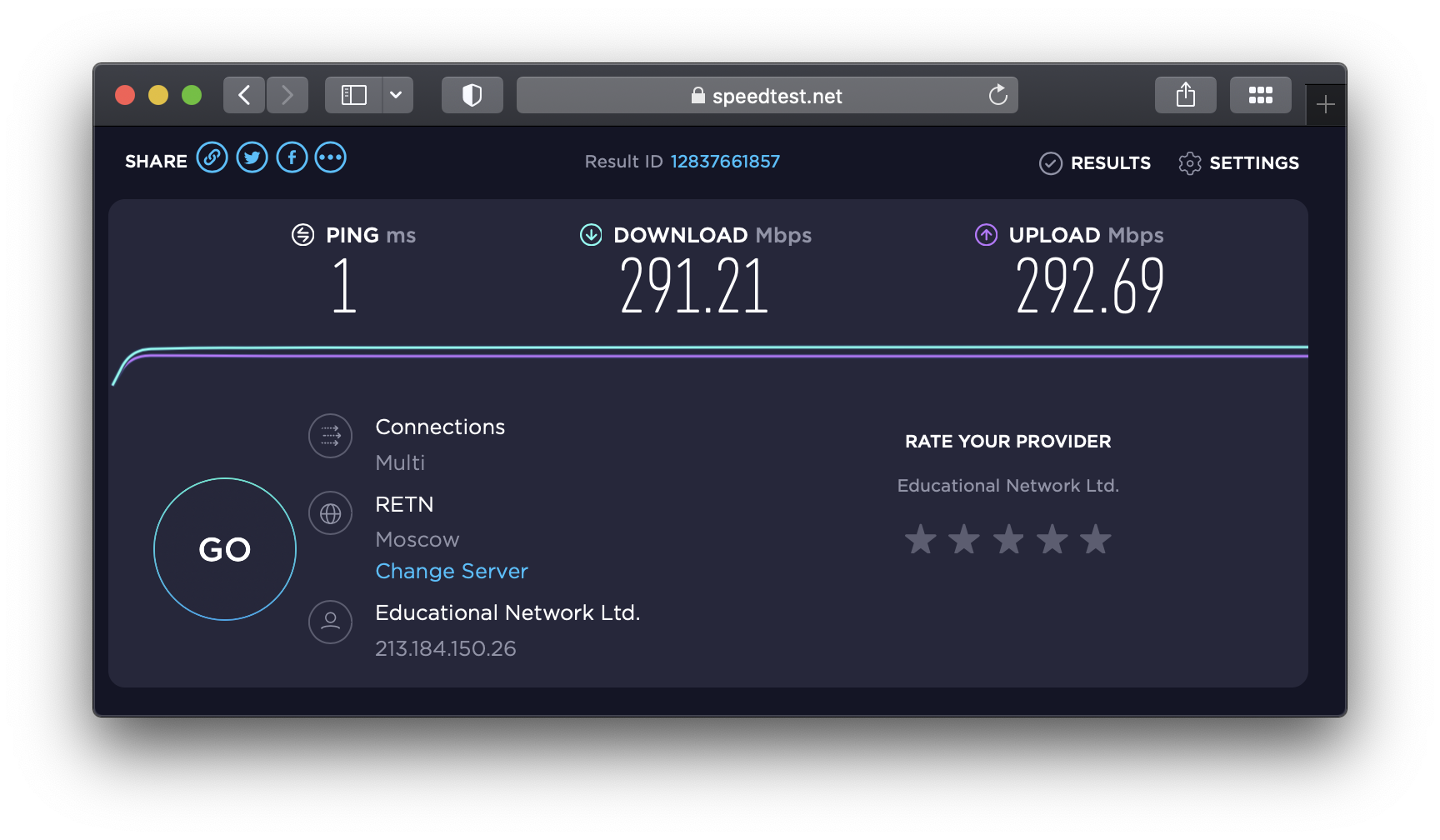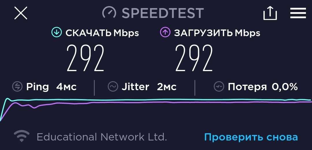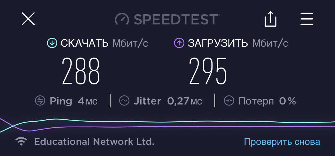 У нас сеть 300 Мбит/с. Сравнивать её с обычной бытовой сетью не стоит, поскольку гигабитная сеть для физических лиц будет стоить гораздо дешевле 300-мегабитной для юридических лиц. Напрямую в компьютер по проводу она выдаёт обещанные ±300 Мбит/с: