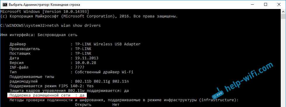 В строке «Поддержка размещенной сети» должно быть написано «Да». Если вы выполнили команду, и «Поддержка размещенной сети» – «Нет», то устанавливайте, или обновляйте драйвер Wi-Fi адаптера. Как этот сделать на Windows 7, я писал в этой статье. А если у вас Windows 10, то смотрите статью: обновление (установка) драйвера на Wi-Fi в Windows 10.