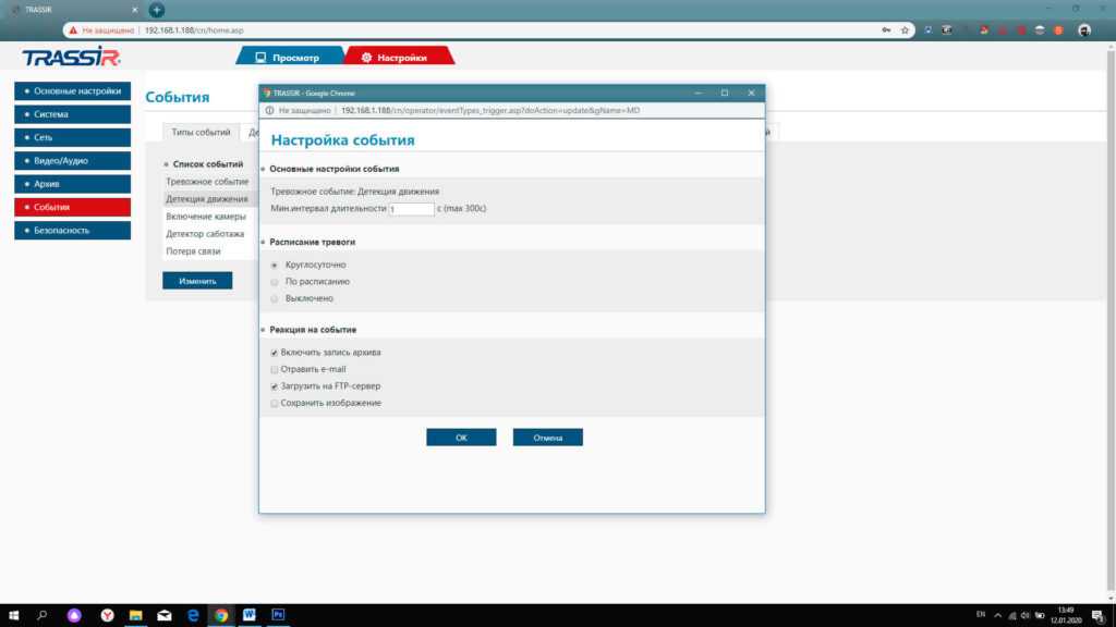 Для того чтобы заставить IP-камеру снимать после регистрации движения отдельным датчиком, понадобится включить соответствующую функцию в программном комплексе, отметить область и нажать «Сохранить».