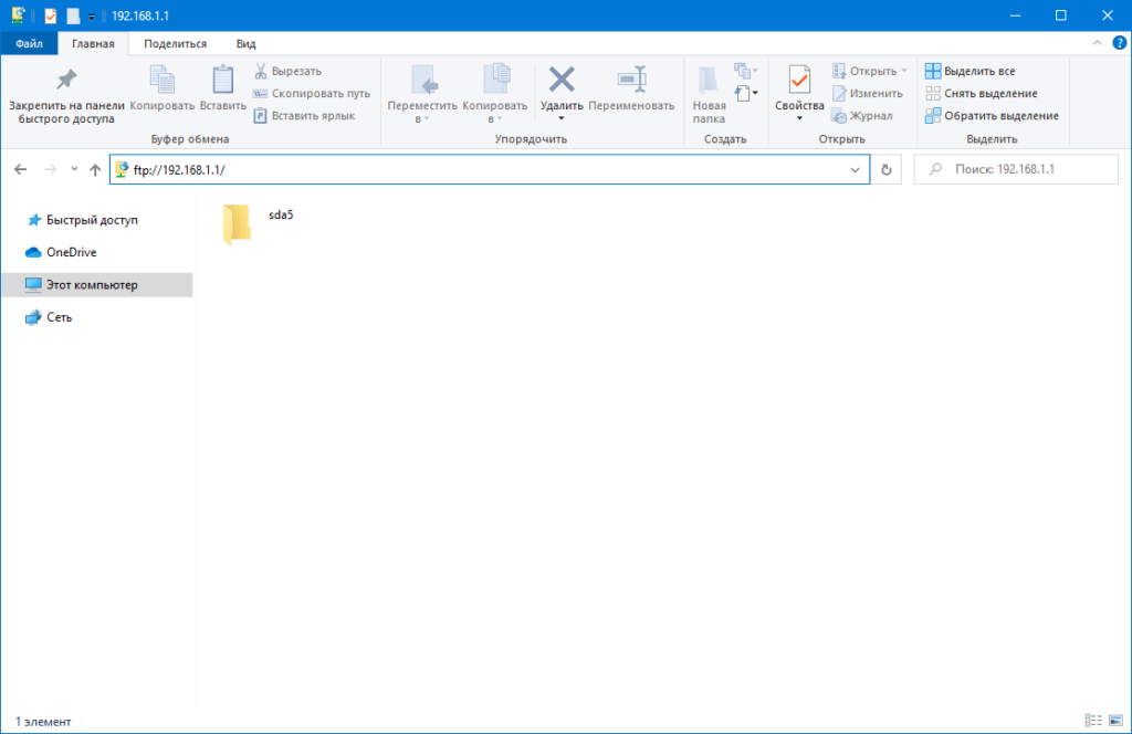 Для этого необходимо перейти по адресу, который практически аналогичен меню настроек роутера – ftp://192.168.1.1/. Его необходимо скопировать и вставить в адресную строку «Проводника», либо ввести вручную. То есть, открывается «Мой компьютер», и в верхней части пишется вышеуказанный адрес.