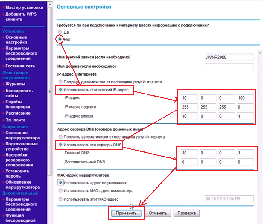 - Если ваш провайдер предоставляет данный тип подключения со статическим ip адресом, вам нужно будет заполнить соответствующие поля.