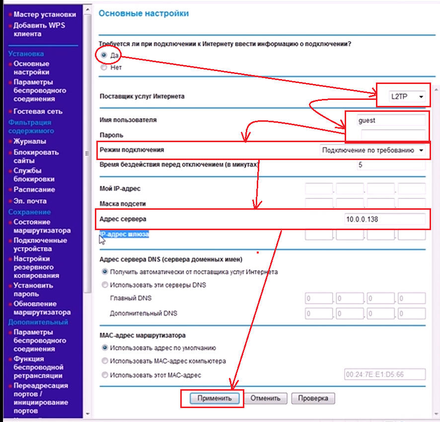 - В пункте «MAC-адрес маршрутизатора» выбрать «Использовать этот» и вбить сам адрес.