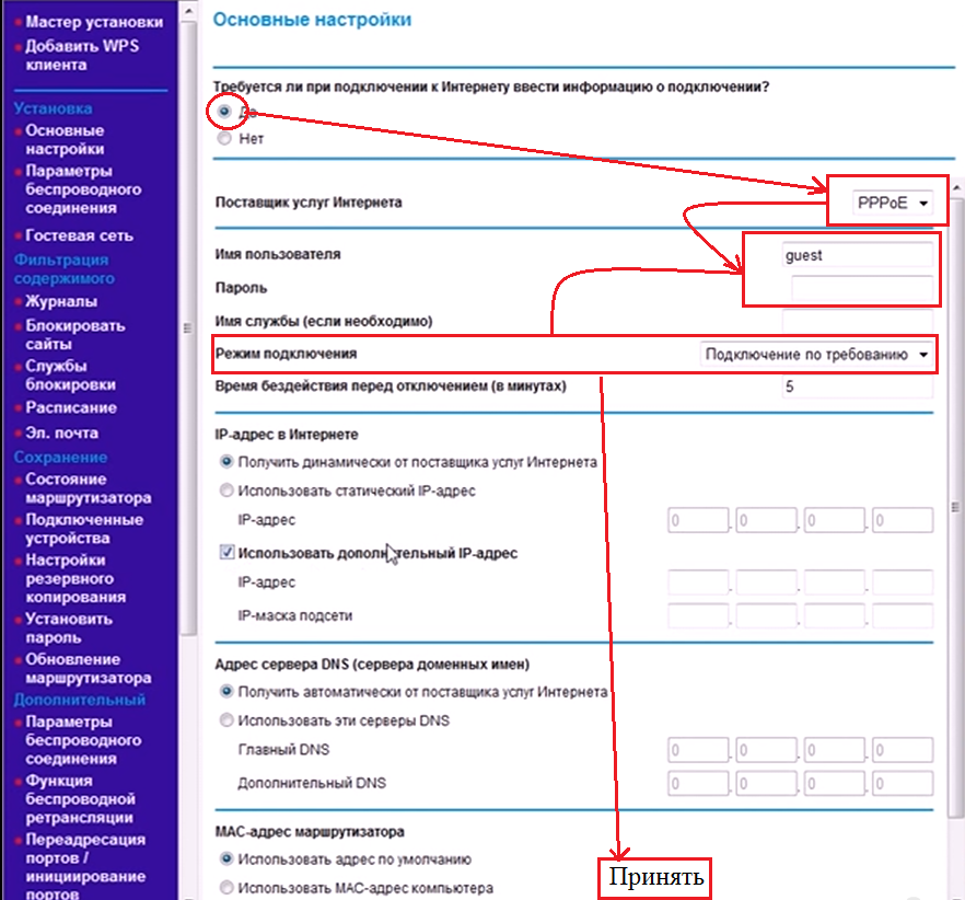 Настройка PPPoE-соединения проходит в несколько шагов: