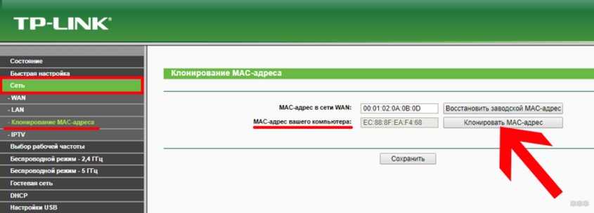 «Клонирование MAC-адреса». Этот шаг нужен, если провайдер «привязывает» пользователя к адресу сетевой карты; кликнув по кнопке «Клонировать», владелец роутера задаст для устройства такой же адрес, что был у компьютера.
