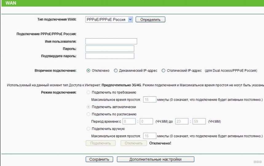 - Режим соединения (WAN connection mode) — Подключить автоматически (Connect Automatically)