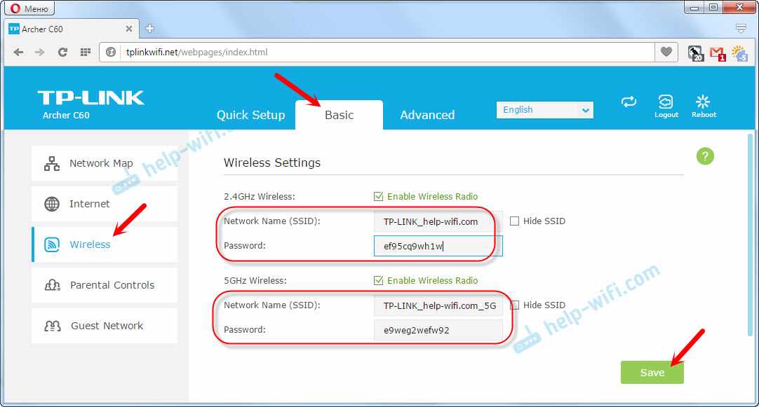 Настройка Wi-Fi сети и пароля на TP-Link Archer C60