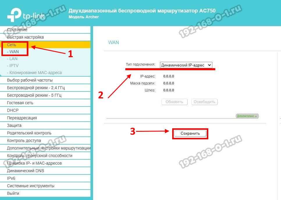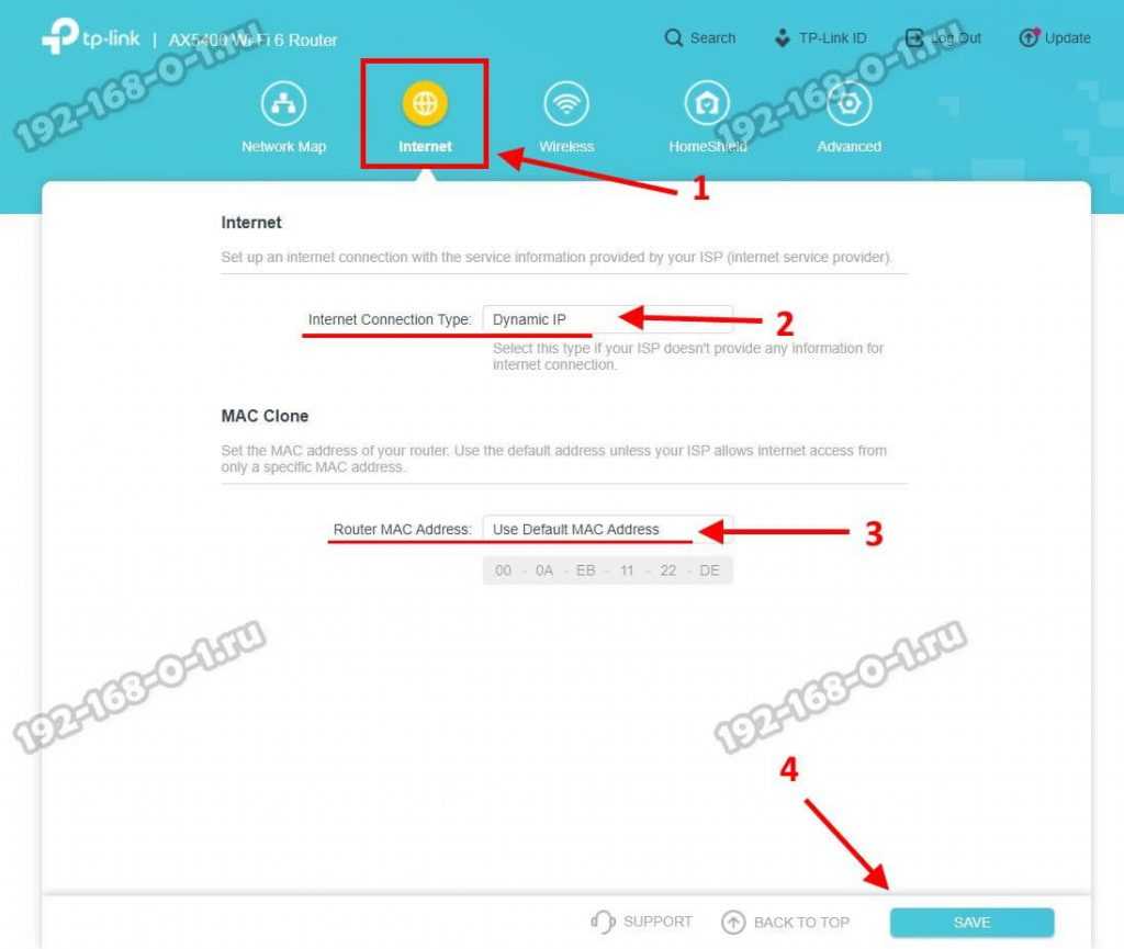 Чтобы настроить его самостоятельно — надо открыть раздел «Интернет» и в строке «Тип подключения»(Internet Connections Type) поставьте значение Dynamic IP. В разделе «MAC Clone» есть возможность клонировать мак-адрес с компьютера или другого роутера, но в сетях Ростелеком редко используется привязка по MAC-адресу. Поэтому я обычно оставляю заводской адрес ТП-Линка. Нажимаем кнопку «Сохранить»(Save), Проверяем доступ в Интернет.