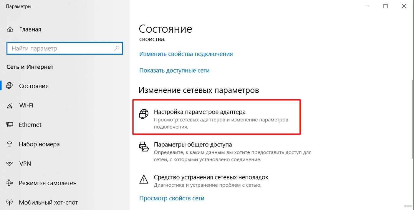 - «Настройка параметров адаптера» (Раньше было – Изменение параметров адаптера):