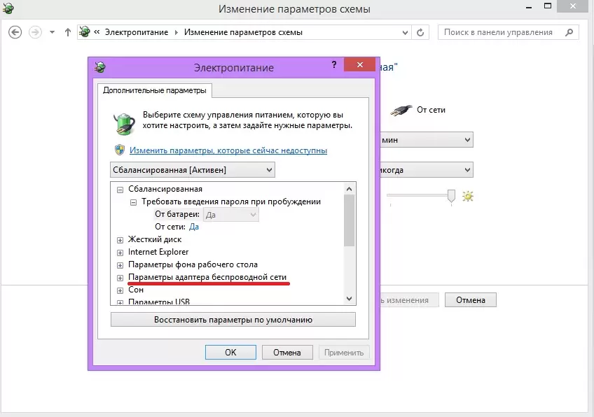 Этот пункт касается настроек управления электропитанием вашего компьютера. В целях экономии электроэнергии система сама может отключать интернет.