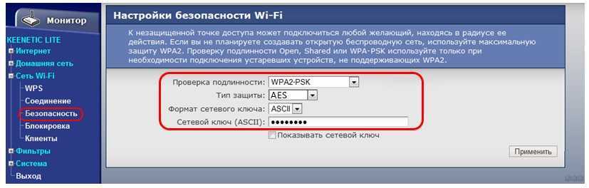 На старых моделях пароль от Wi-Fi устанавливается в разделе «Безопасность». На новых – на основной странице настройки беспроводной сети. Там нужно выбрать тип защиты (рекомендован WPA2-PSK) и задать ключ безопасности.