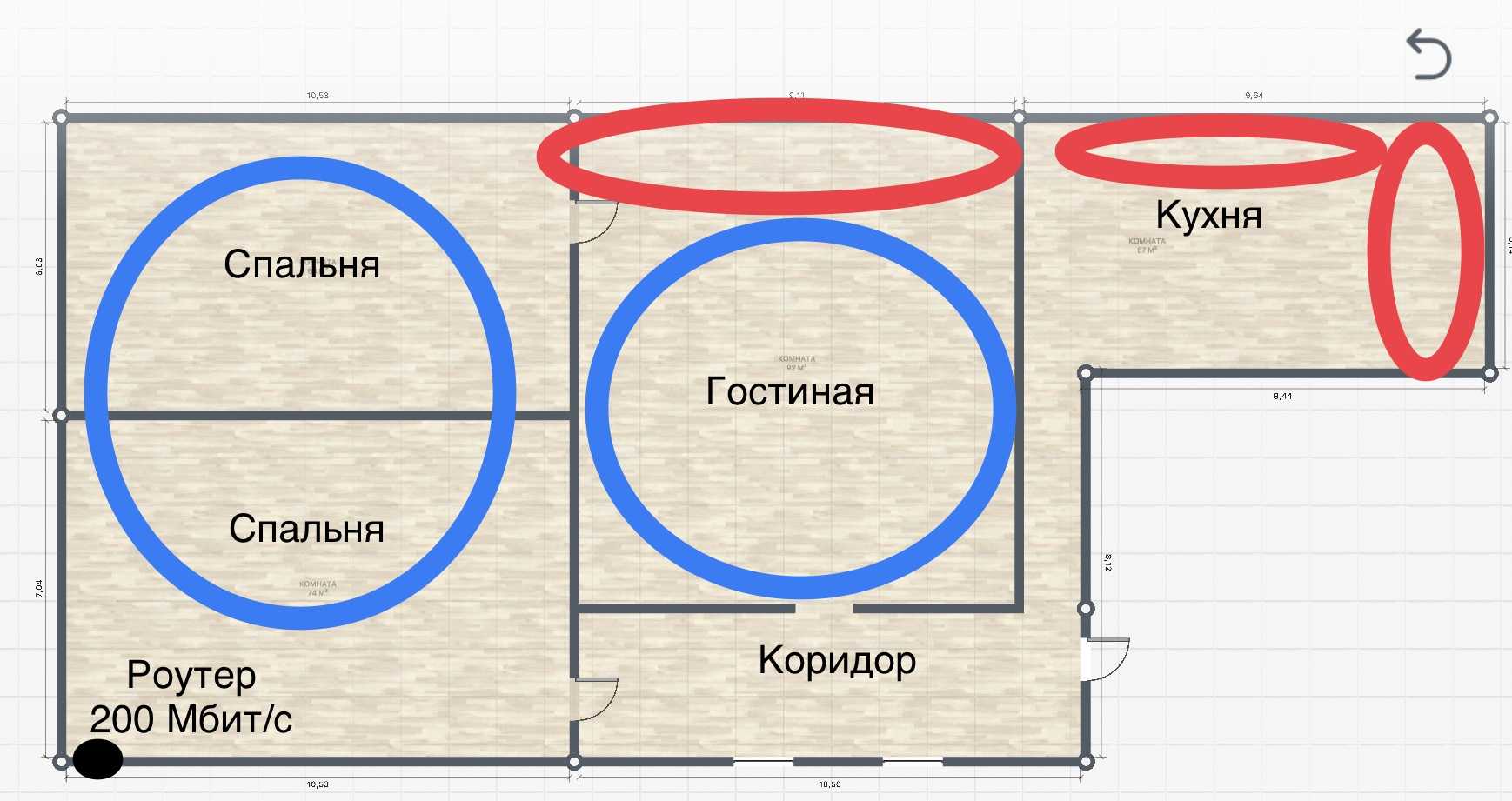 В той же квартире у меня постоянно возникала проблема с недоступностью сигнала Wi-Fi на кухне, поскольку роутер находится в спальне в самом дальнем углу квартиры. После установки Mesh-сети проблема исчезла, и везде был доступен интернет на моей максимальной скорости в 200 Мбит/с.