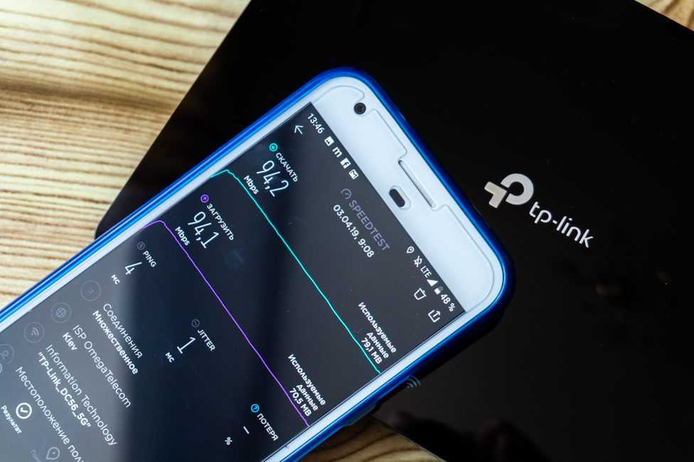 Работает устройство стабильно, выдавая максимально возможные цифры с подключением от провайдера. Проводным способом ПК получал порядка 94-95 Мбит/с на загрузку и 93-94 Мбит/с на отдачу со 100 Мбит подключением. А больше он и не выдаст, ведь порты здесь, напомню, не гигабитные. По Wi-Fi с тем же соединением с 5 ГГц сети получалось тоже очень неплохо — 94 Мбит/с в обе стороны.