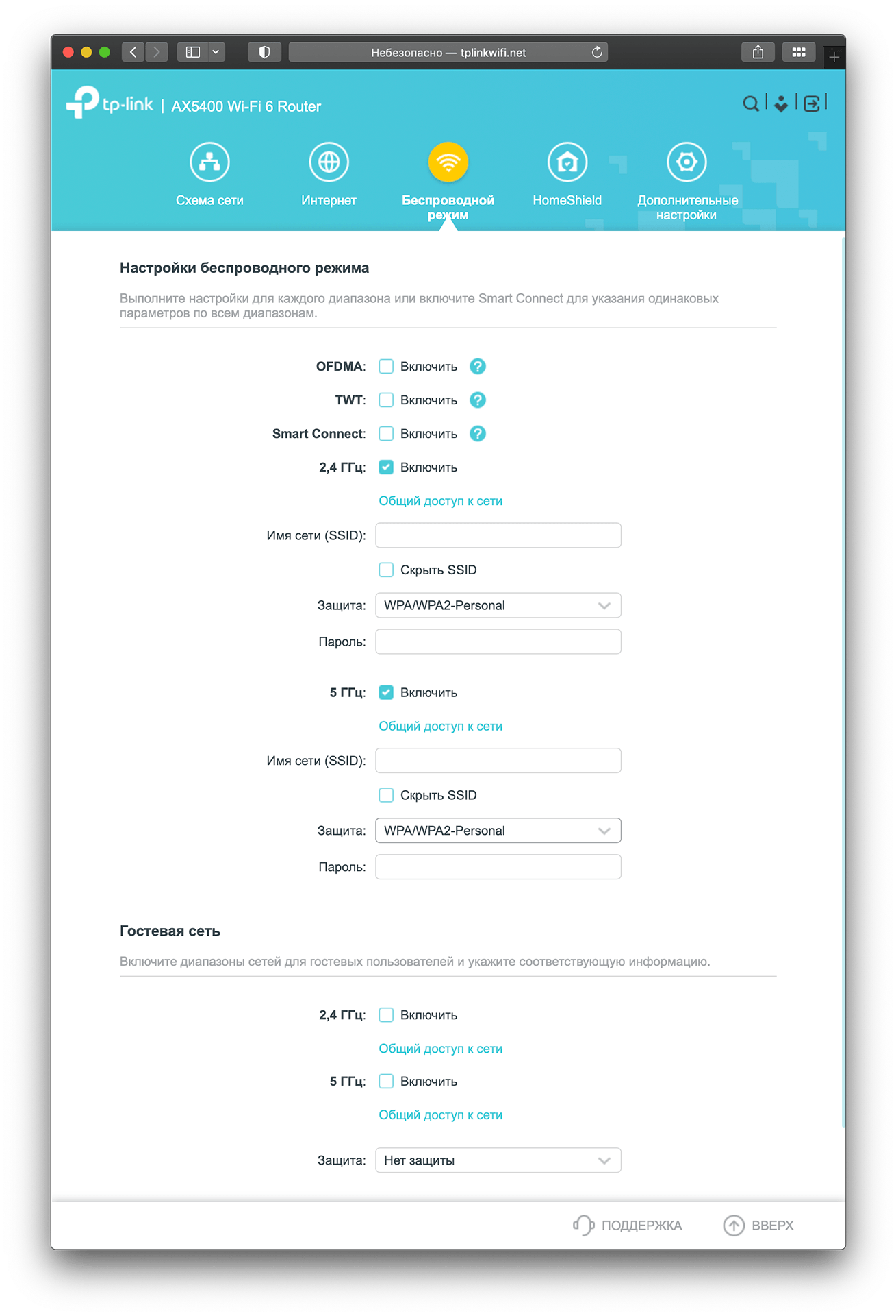 - Гостевая сеть (одна в диапазоне 2.4 ГГц и одна в диапазоне 5 ГГц).