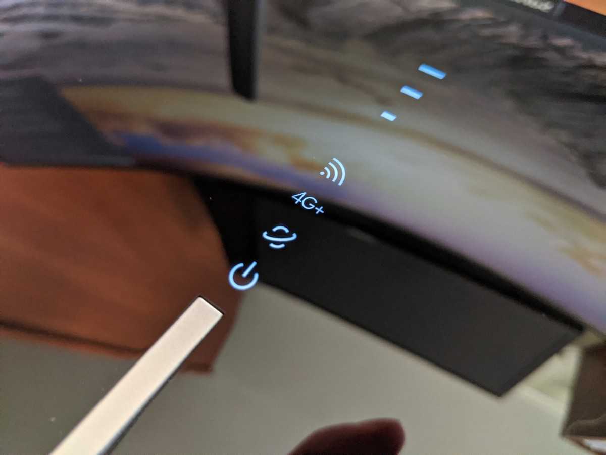 На верхней части по центру есть лого компании серебристого цвета, ниже — несколько привычных индикаторов. Это состояние устройства, сети, Wi-Fi, подключения к LAN-портам и LTE-модуля.