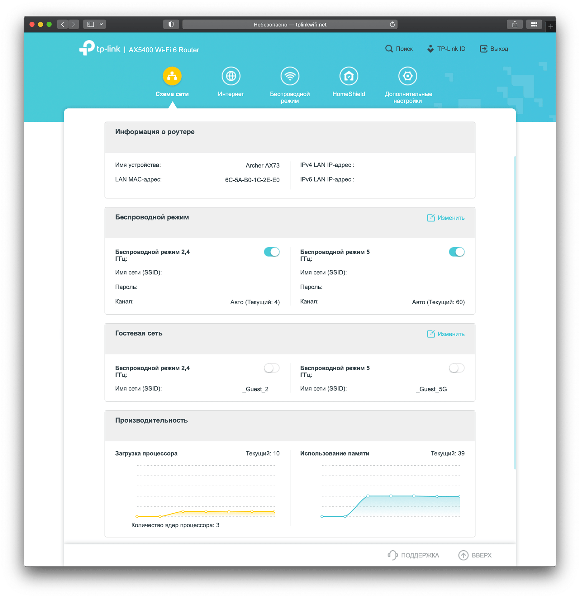 Кстати, в настройках TP-Link Archer AX73 AX5400 вы сможете установить VPN-клиент или сервер, включить «Яндекс.DNS», защищающий сеть, а также выбрать режим, в котором будет работать подключённое к USB устройство.