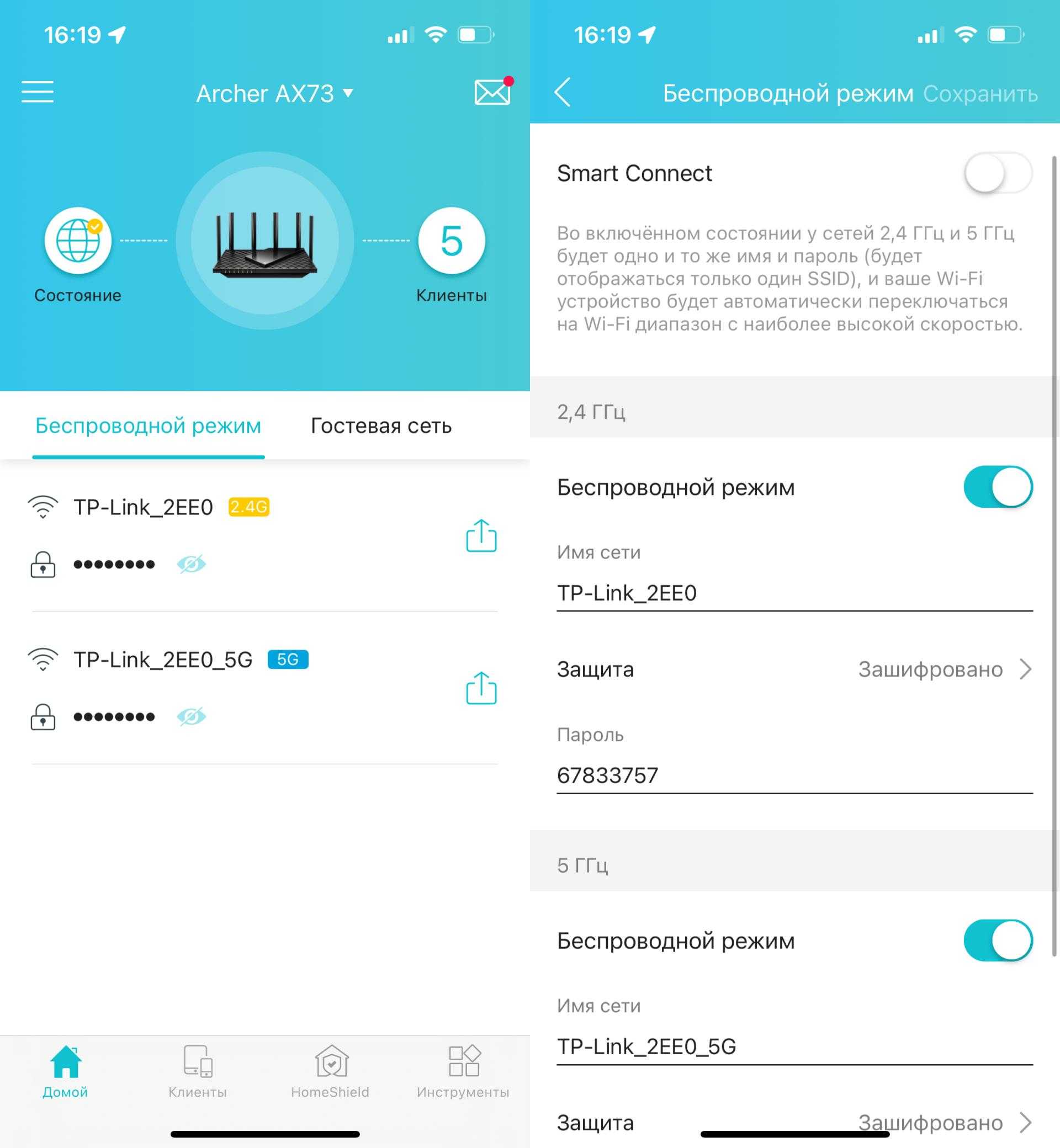 Также эти настройки можно произвести в приложении TP-Link Tether. Просто откройте главную, а затем тапните по любой из двух доступных от роутера сетей: