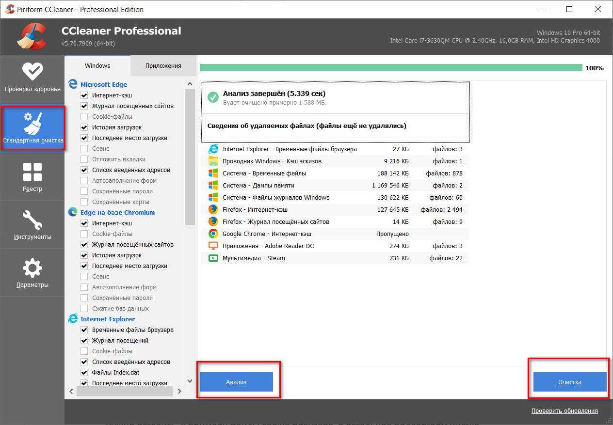 Для этого включаем CCleaner или его аналог. Заходим во вкладку «очистка», выбираем то что нам нужно оставить, к примеру файлы cookie браузера, а остальное подвергаем чистке.