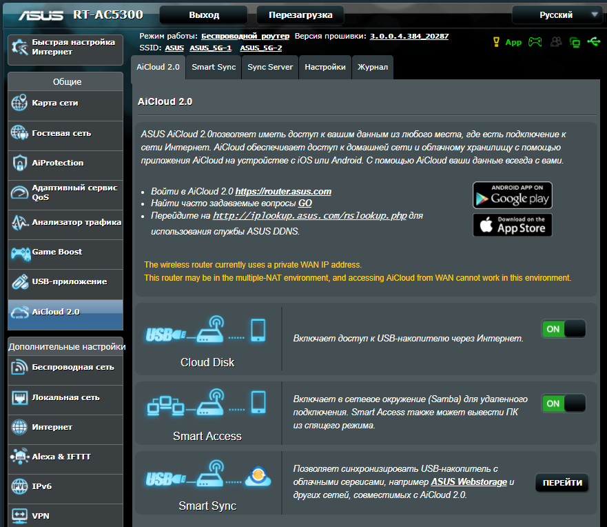 Настройка интернета и Wi-Fi сети в панели управления Asus RT-N18U