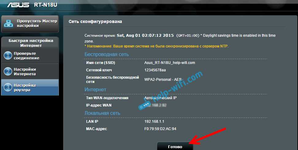 Смотрим на все заданные нами параметры, записываем куда-то пароль от Wi-Fi сети и нажимаем кнопку Готово.