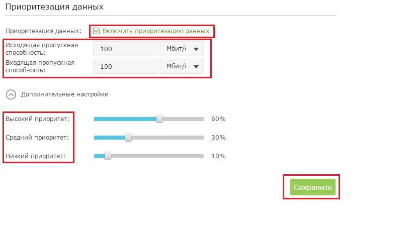 Откройте Расширенные настройки (Advanced)> Приоритезация данных (QoS)
